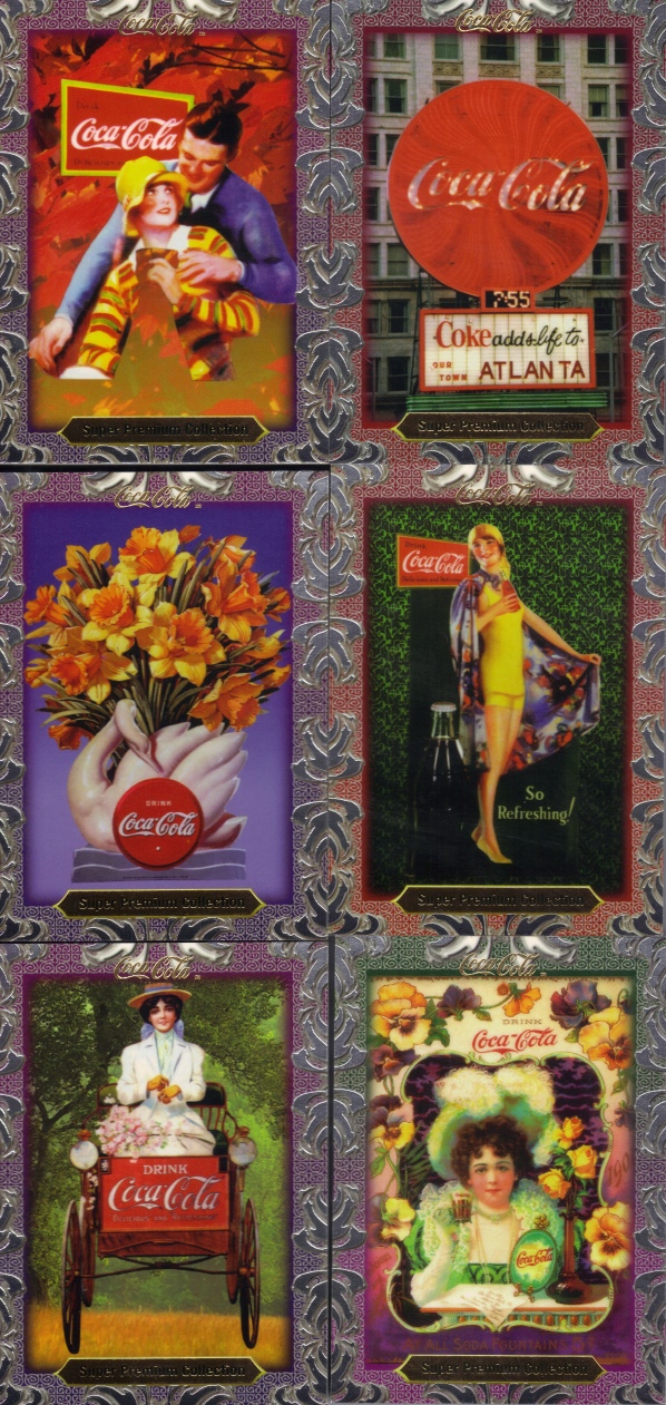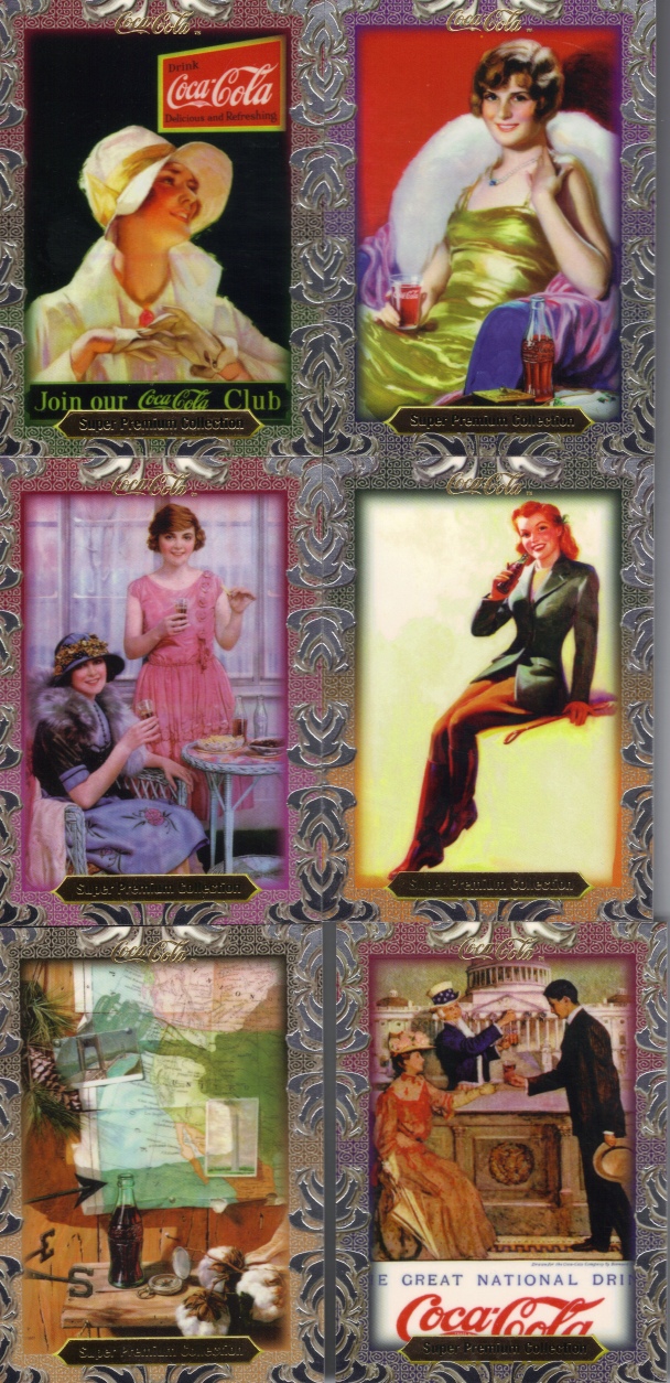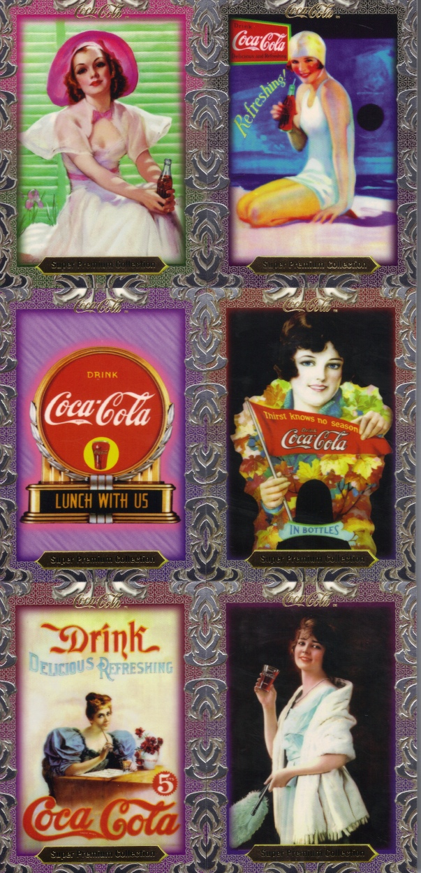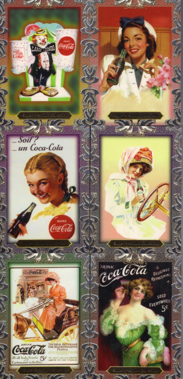 Right side. The artwork is from 1943 in the top card. The second one is from 1946. The bottom card is another from 1995 and shows 'The World of Coca-Cola' in Atlanta, Georgia.
