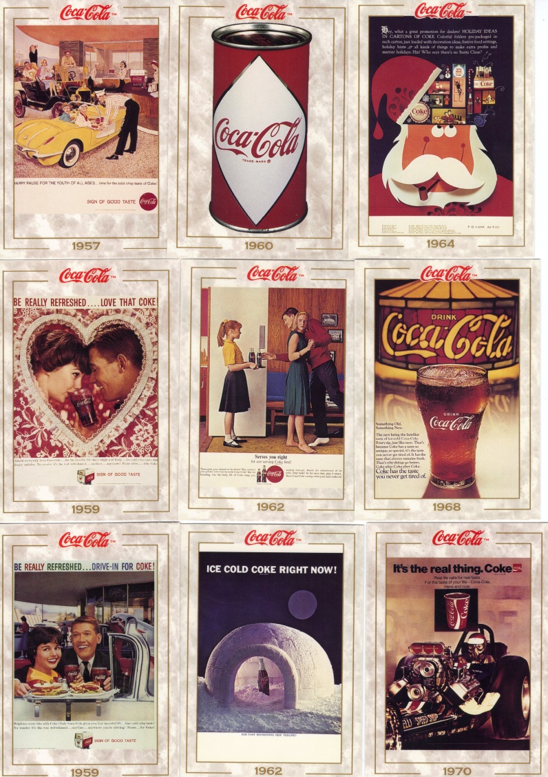 The Coca-Cola trays (1962) are a major collector's item. The rest of the cards show typical artwork.