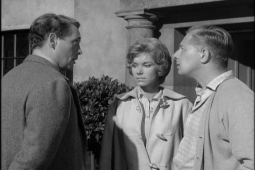 The man is the spy, the woman is his daughter. He actually was behind his government's believing that he was dead. He doesn't want to work for either side.