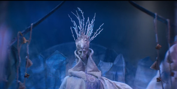 Then there's a useless scene where a Fizzgig-type animal barks at Aughra (it had been quiet up till then) and she ends up barking right back and this terrifies the animal. Aughra says she has seen that the Skeksis will meet their fate but not by the hand of the Stonewood Gelfling.