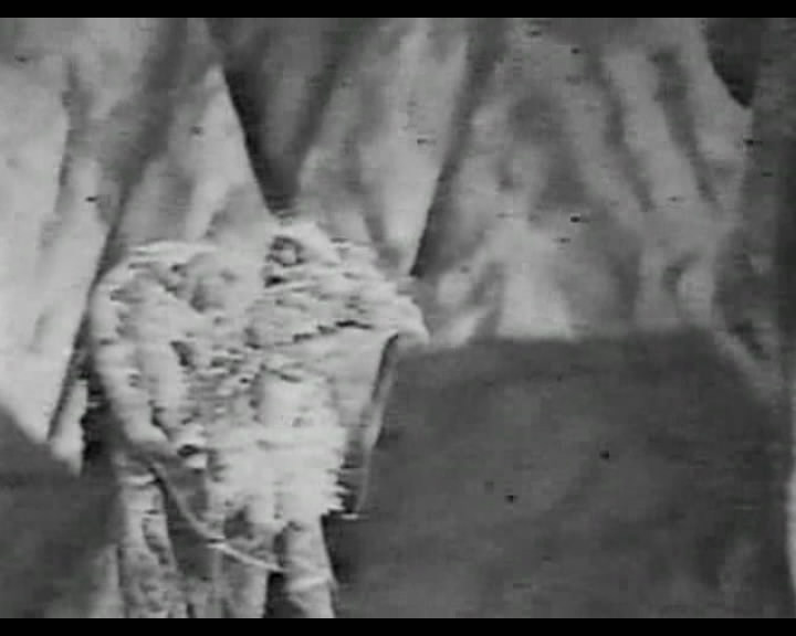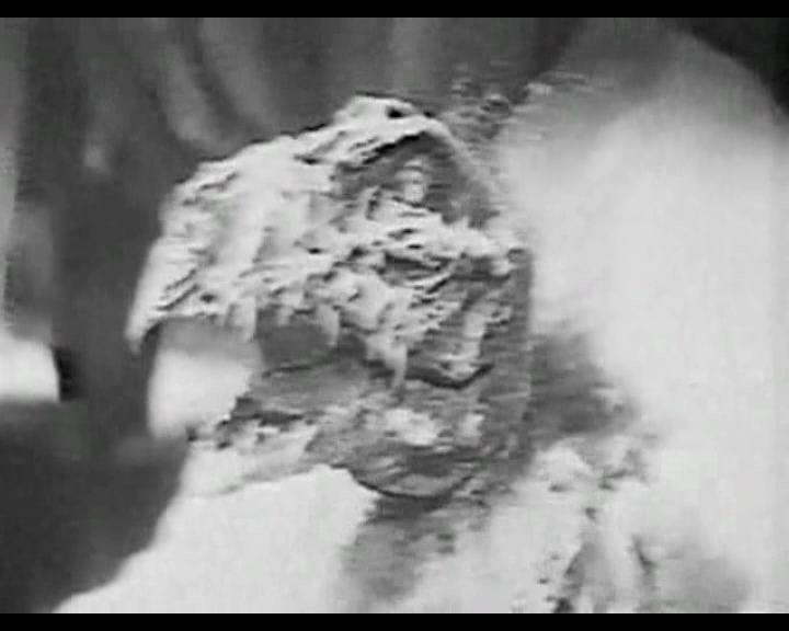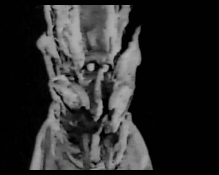 In the work print the special effect of the red ray going into the eyes of the podling is not present.
