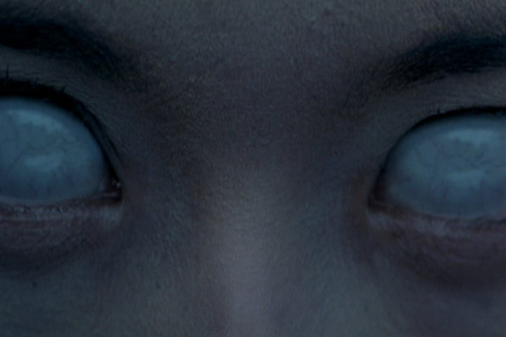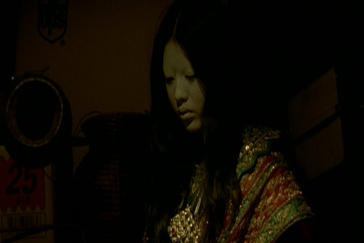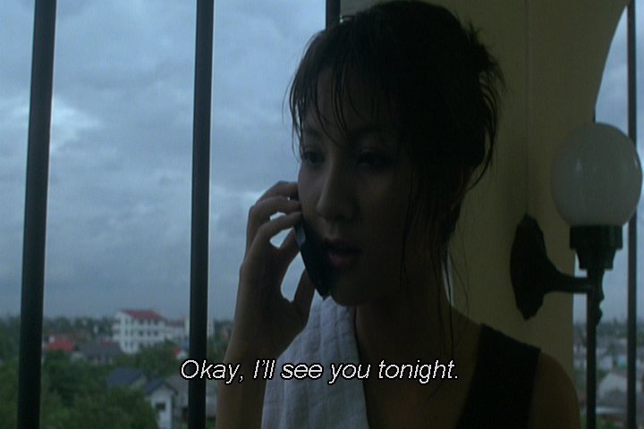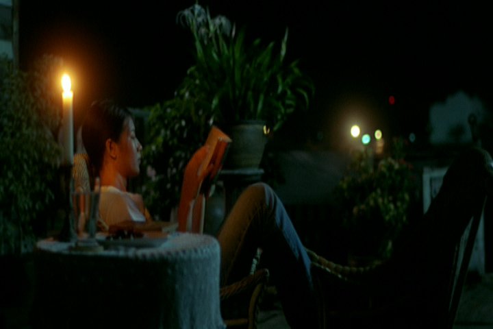 This girl, Jieb from the start of the film, tries to work on her computer. The lights go out and she goes outside to read by candlelight. Apparently we've suddenly jumped from 1917 to present-day. She hears an odd sound and gets a knife.