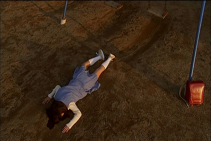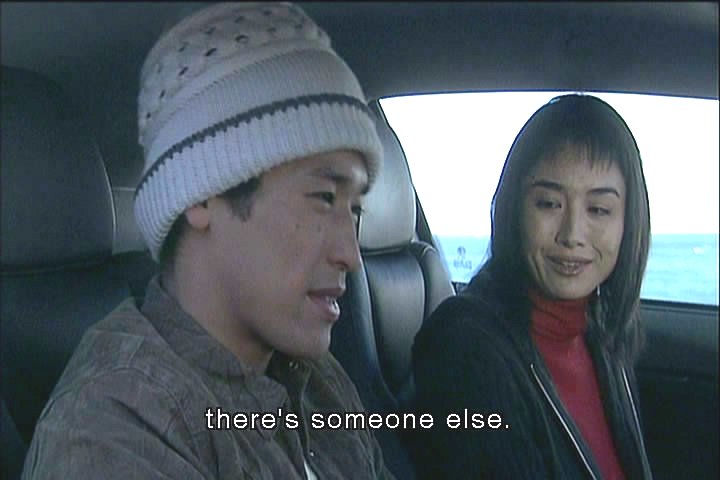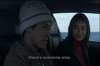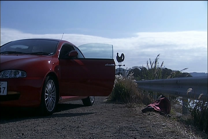 In another past scene, the woman might not have been dead after all. She crawled back into the car but Shingo took off. Her scarf got caught and she was dragged for a ways. When he released the scarf she fell into the ocean.