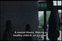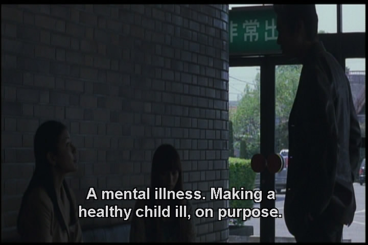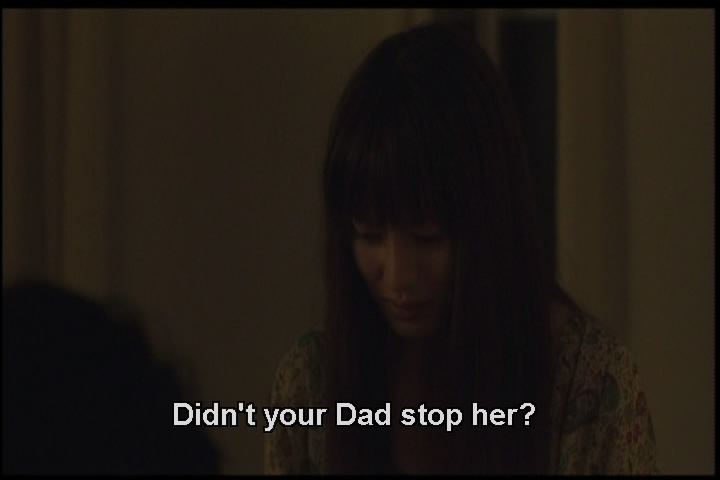 The guy finds out Yumi's mother had abused her by hitting her, and she still carries the marks. Her mother also burned her with cigarettes and forced her to look through a peephole to see her own grandmother hanging in a room.