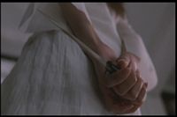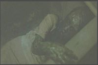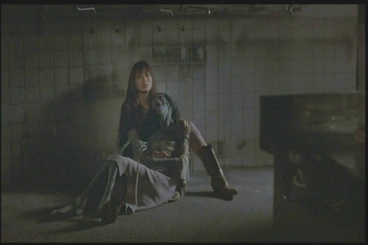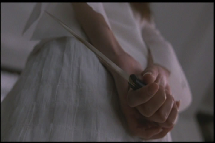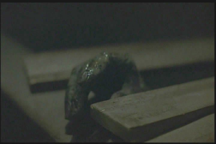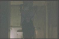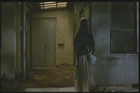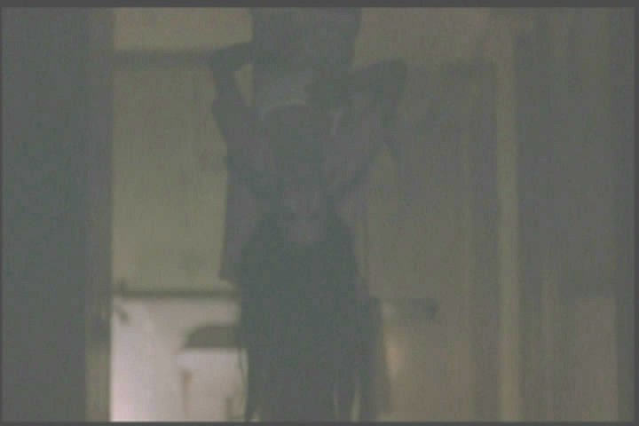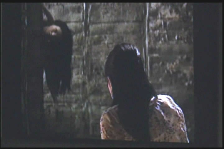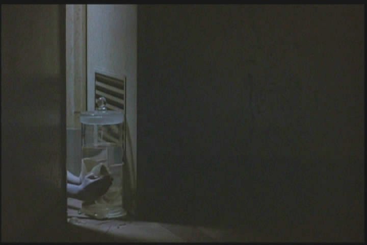 She runs away but backs into the same figure later, then runs away again. (Again, the image was so dark in the film I had to lighten it a lot.)