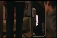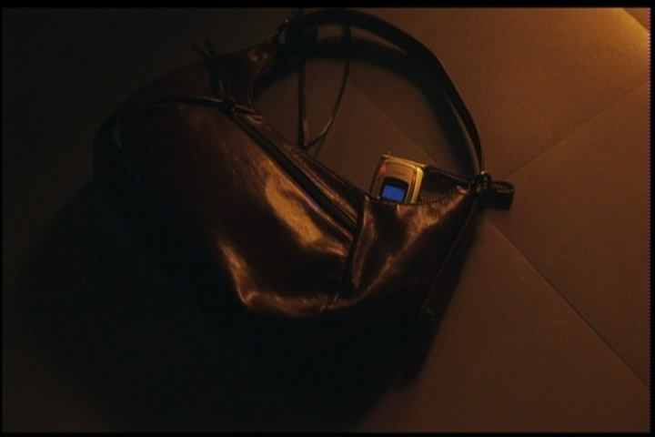 In the other room a hand is holding another cell phone. He takes it from the hand. Suddenly both cell phones stop making noise.