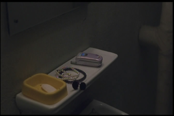 A cell phone rings while they are still in the restroom. It's Yoko's phone, butn ot her ring tone.