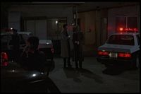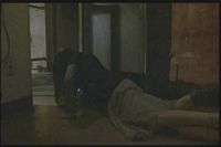 Some guy looks at a dead woman's body, and a policeman comes in.