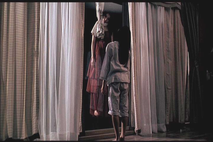 (How many cliches are there going to be? The photo album with pictures with faces scratched out, a strange presence creeping under the covers and a face appearing, a telephone ringing when it's not connected, dead animals, a daughter with a disability, and we're not even half way through the film yet.)