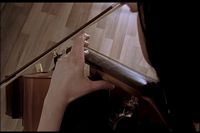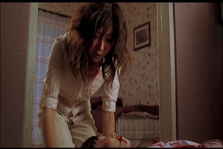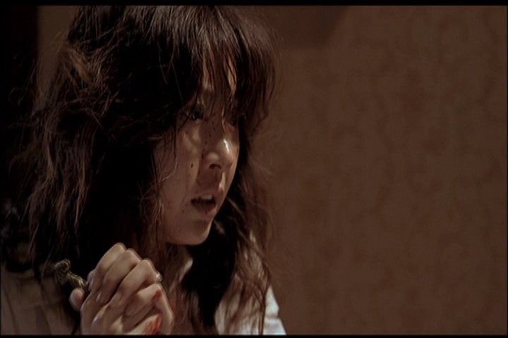 Mi-ju sees the other woman again and stabs her in the back. It turns out to be the houskeeper. (Who appears to be stabbed in the front, not the back.) She then runs to her elder daughter's room and finds her cello playing itself, so she destroys the cello with a golf club.