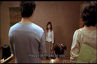 Then we go back to the early part of the movie where she gets home from the college and no one appears to be in the house but it turns out to be a birthday party for her.