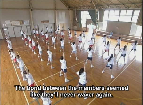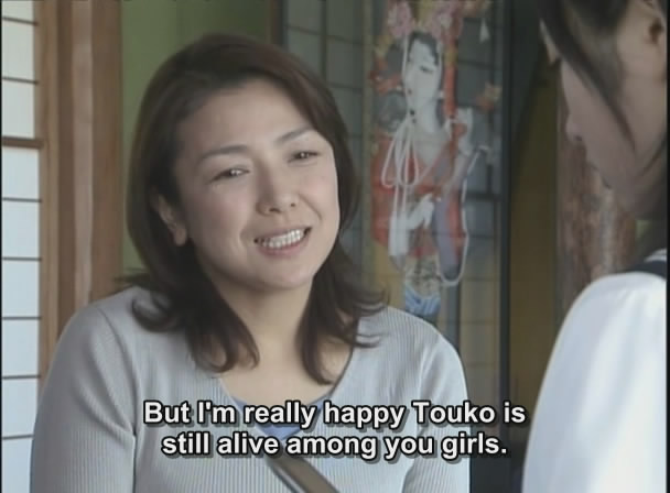 After showing her feelings straight out to the other members, they all talk about Touko and end up going to her memorial and basically re-dedicate themselves to being good cheerleaders. Things change, and freshmen rejoin.