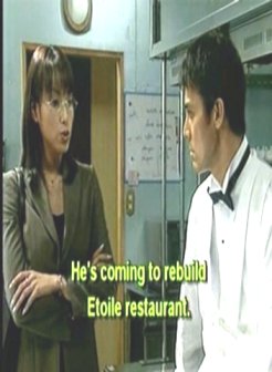 The reporter tells them someone sharp is coming to take over Kensaku's old restaurant.(center). The new guy, Ito, had a restaurant in France with Kensauku who, himself, now hates Ito. The chef lacks confidence and the restaurant has no meat or fish and can't seem to get any from their vendors.