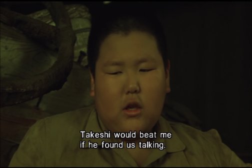 Futoshi's sister's boyfriend got drafted. She tried to get him to stay and her father beat her up for that.