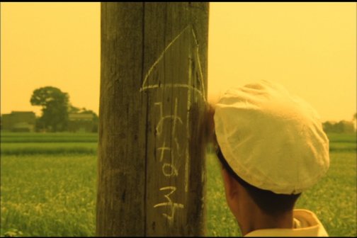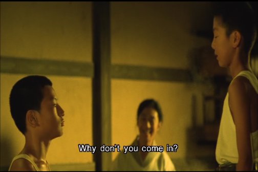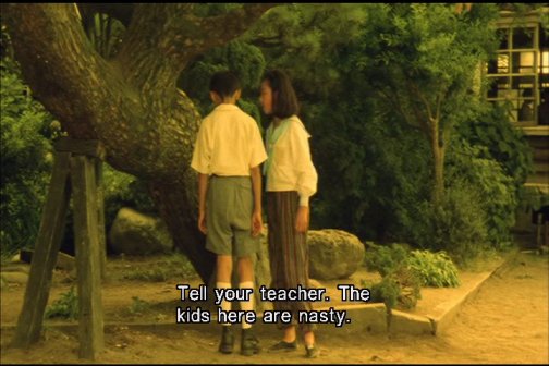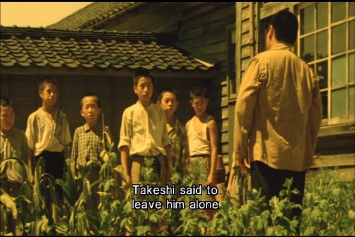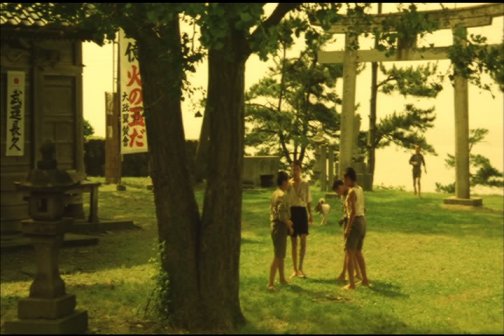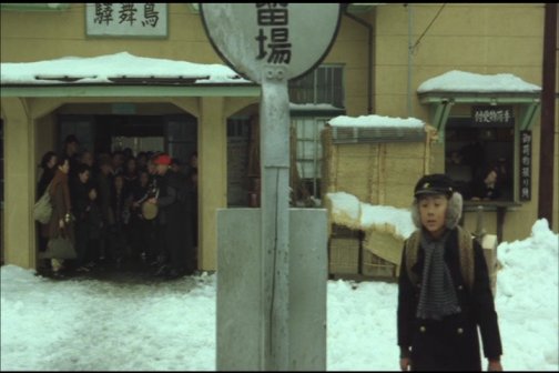 Shinji goes to town to pick up a parcel of his books from Tokyo. The bully rides a bike to get to him (reason unknown at this time of the movie.)