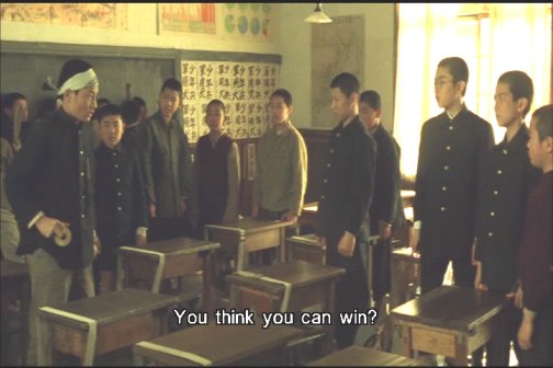 Ohara gets to school and he's in pretty bad shape. The teacher doesn't believe his excuse that he fell. The teacher tells them that their bodies are dedicated to the country and they shouldn't hurt them in silly fights.