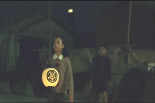 Shinji walks Minako home. Notice the lighthouse in the background, and the paper lantern that Minako is holding.