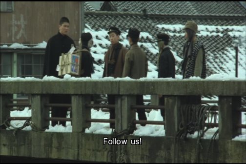 The group wants to test Shinji's loyalty by having him do something to the new kids from Tokyo. When he refuses the leader slaps him.