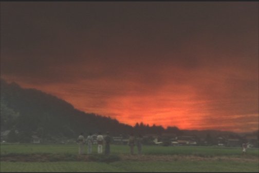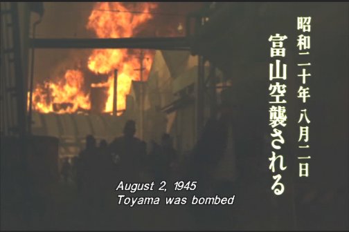 In Tokyo, Shinji's mother and brother go for an air raid shelter when the sirens sound.