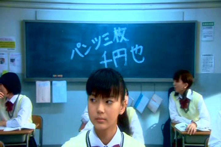 The head of that portion of the school calls the girl into the office after class. Her punishment is to write the school rules down a certain number of times.
