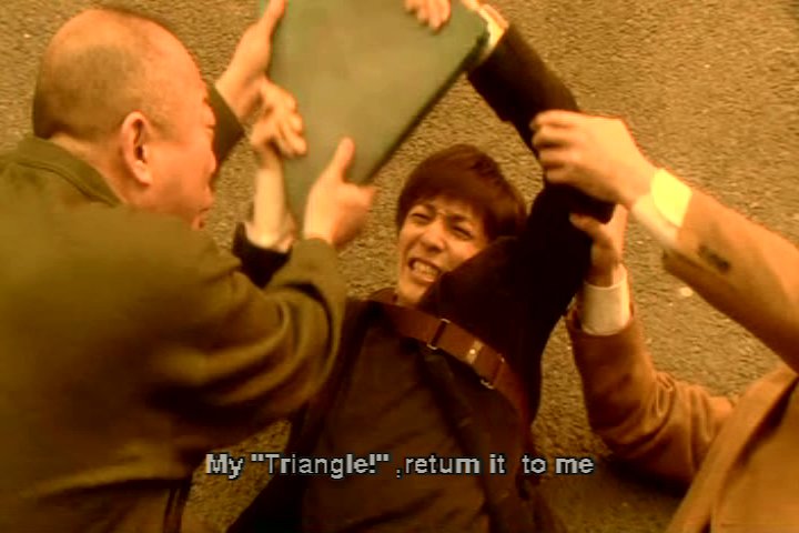 He goes to Osaka and she goes with him. His plan seems to be to steal the triangular.