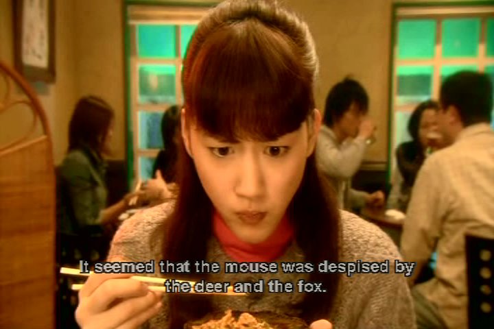 Michiko is jealous. She then talks about stories of the rat (or mouse) and the fox.