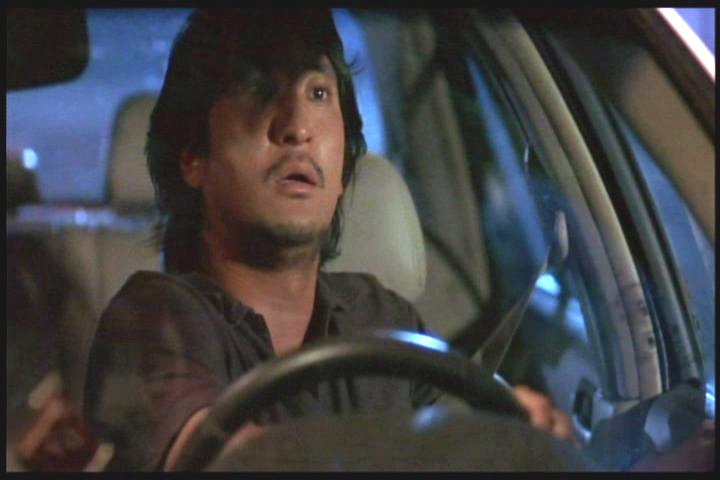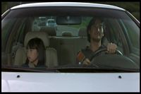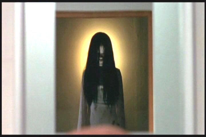 He's driving back home, leaving Jin at her grandmother's (her mother is dead.) He hears strange sounds on the radio and Jin sees a Sadako-like woman outside her room.