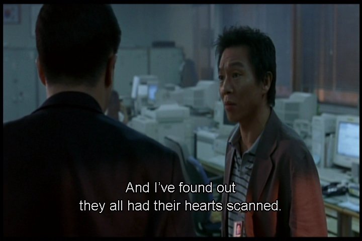 A detective is talking to some other scientist/morgue worker/something about the killer's methods. Then there's scenes of a doctor performing another transplant and something strange in some kind of booth he passes through when he's done.