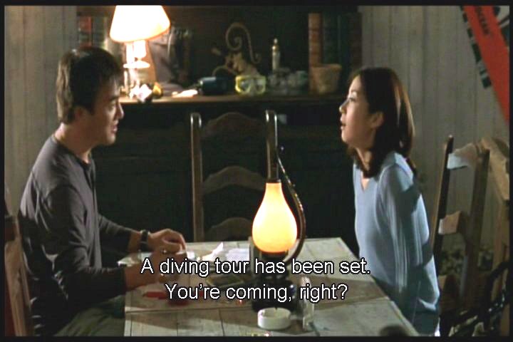 She meets with a member of the scuba club she belongs to. He later asks her something about what she would do if someone said they needed her help.