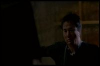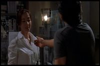 Lee, the scientist, answers his door and there's a woman with a box. She's brought a skull for him to work on even though he had told the boss guy he was quitting.