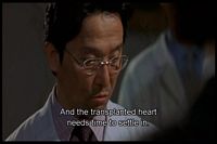He keeps trying to find out who donated the heart but the doctor keeps sidetracking him and refusing to give him a direct answer.