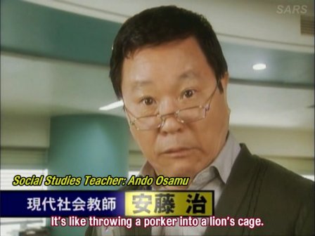 The lead teacher has lost some money so he suspects Yamaguchi's students. She confronts some of them and starts to get a little testy with them.