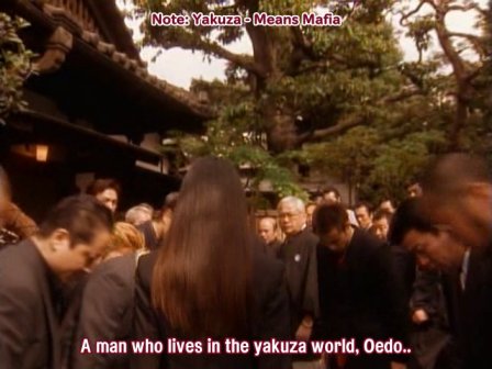 Two other guys give her a kimono. Thing is, she's supposed to take over the family "business."