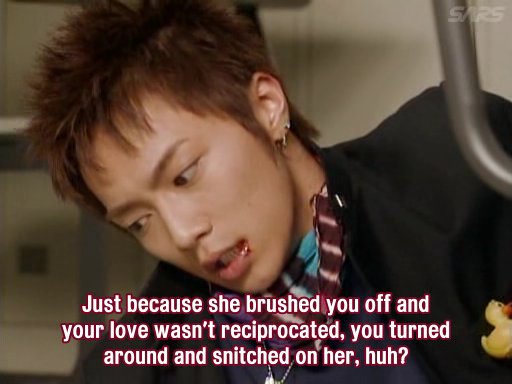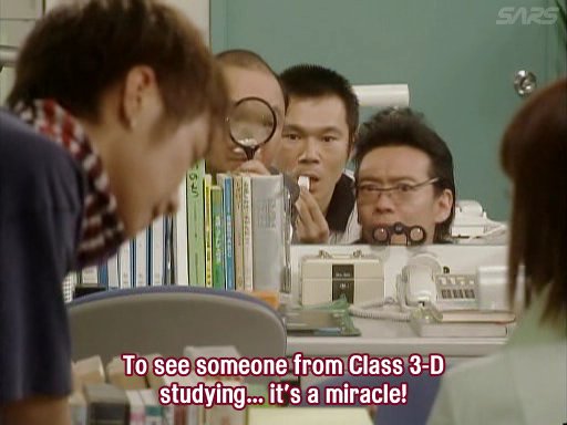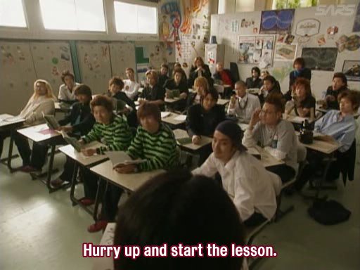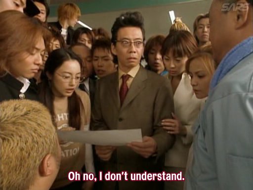 Three of the guys from Yamaguchi's "gang" are also out for some fun at a club, and one of the "hostesses" is one of the female teachers from the school.