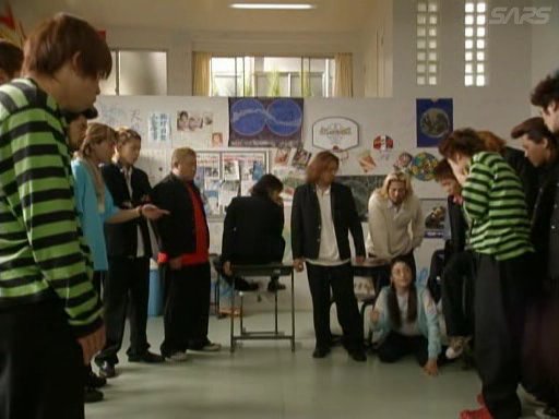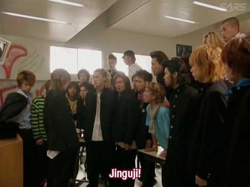 Two of the students get into a fight and one gets knocked down. Yamaguchi encourages him to get up and keep fighting.