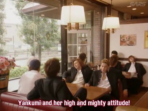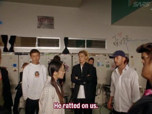 Her class arrives at the warehouse where the gang has just beaten up Kuma. One of the punks attacks Yamaguchi.