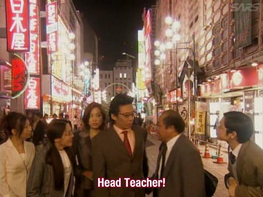 They are out on night patrol but some women run up to the head teacher and one of them calls him goro-chan.