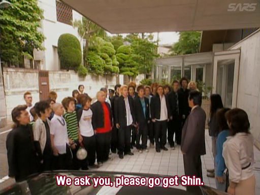 The whole class shows up to ask the father to go and pick up Sawada (Shin).