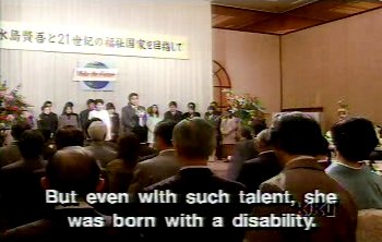 Jun's teacher Shinichi gives him some papers he copied on autism. Mayuko at the moment is in the swings.