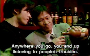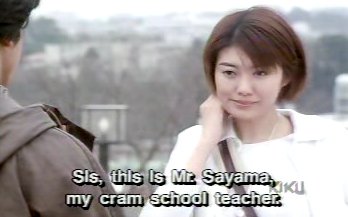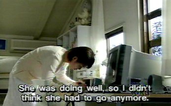 The teacher and a friend of his are eating together. Something had happened in the past to some woman and that is what caused Shinichi, the teacher, to quit the hospital where he was teaching and become a cram school teacher instead.
