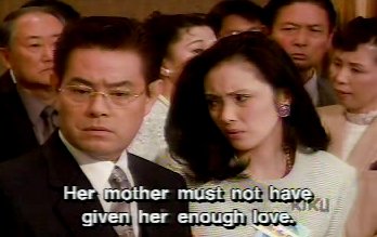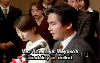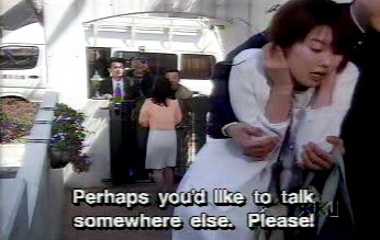 Hello there. I am teed off. Really really teed right now. Both at her father and at the unfilling, greed-filled insurance person who has just made his pretty little speech. Mayuko's father said she was to accompany him that day, but didn't bother explaining what for. It's obvious the beans-for-brains father of hers doesn't have any understanding at all of her daughter's problems or needs. To do something like this to her is unforgivable.