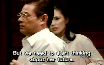The reporters try to interview her even though the mother doesn't want them to and Jun has to rescue her from them.