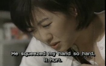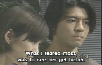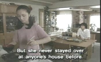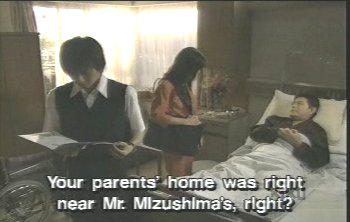 Mayuko's mother seem them but is smiling, especially after the doctor at the hospital who is taking care of her husband spoke glowingly of Shinichi.