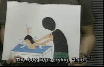 His wife one day took Jun and left him, then arranged for Mayuko's parents to adopt Jun as their own child. He says his ex-wife went along with the "accidentally drowned" story for a while, and he further admits considering killing Jun.