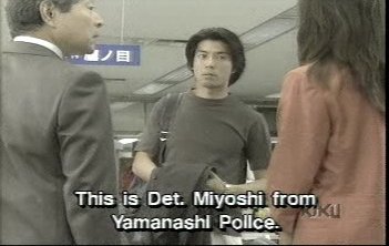 The reporter is checking with a policeman who investigated the slimy politician's son's death so she is out of town until the next day. Mayuko is going to stay overnight at Shinichi's.