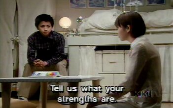 Things fall apart when a guy drops his pen and asks her to pick it up. Since she has not memorized what to do in this case ( as she memorized other things from books on how to act during an interview), she has no idea what she should do.