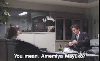 The sleazy politician meets the girl who wrote the article about Mayuko, who is also the girl that is the sister of the girl Shinichi had been seeing. He tries to stir up her feelings against Shinichi.