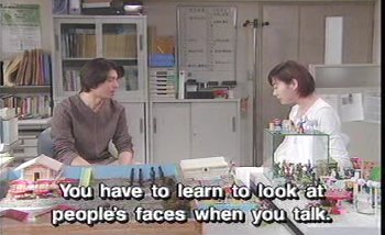Shinichi is working with Mayuko to try to help her understand people's emotions by reading their facial expressions, something that is very difficult for her to do.
