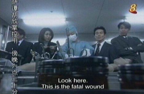 Kuryu is talking to a guy who skipped out of paying at a dinner who happens to have been near the scene of the murder of the girl in the morgue.