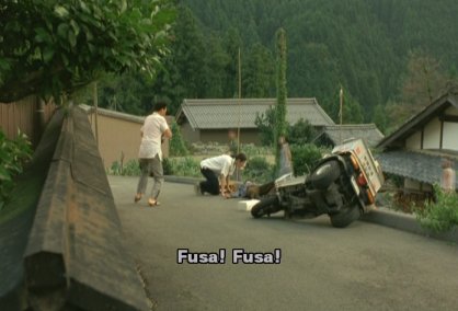 The girl who delivers the papers has fallen off her bike and is having a seizure, apparently. The townsfolk are blaming the women from the Bonomiya family for what is going on.